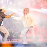 Allí también fue Bad Bunny con pista. Aunque el show caía el público anestesiado no notaba. Benito Martínez Ocasio, rodeado de bailarines hizo Ojitos lindos (la que grabara originalmente con Bomba Stereo), La Canción, Kloufrens, Dákiti y El Apagón, donde ocurrió el gran momento que levantó el show de nuevo: apareció Romeo Santos, bajo un sombrero rural boricua, quien le advirtió a Benito: “¡RD es el final!”. “Quédate en tu viaje / que cuando aterrices/ nadie va a aplaudir…” cantaron la nueva bachata juntos. Bad Bunny siguió aún con DTMF (Debí tirar más fotos) y EOO.
