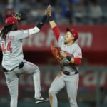 De La Cruz conectó un batazo de 436 pies al jardín central en la cuarta entrada que empató el marcador a 2 contra Jonathan Bowlan, y luego un batazo de 451 pies que puso a la cabeza en la sexta entrada, conectando un batazo de 451 pies hacia la fuente del jardín derecho-central contra Taylor Clarke (1-1). De La Cruz suma 11 jonrones esta temporada. Empató el récord del equipo de Pete Rose para bateadores ambidiestros con cinco juegos de más de un jonrón, incluyendo dos este año.