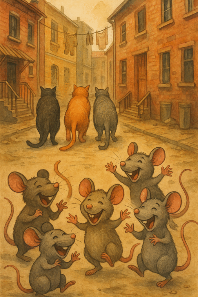 La expresión “Cuando los gatos no están, los ratones hacen fiesta” es de origen universal y se encuentra en varias culturas desde la Edad Media. Representa el momento en que la autoridad, el orden o la vigilancia se ausenta, y quienes están bajo control aprovechan para actuar con mayor libertad, a veces con exceso o travesura.