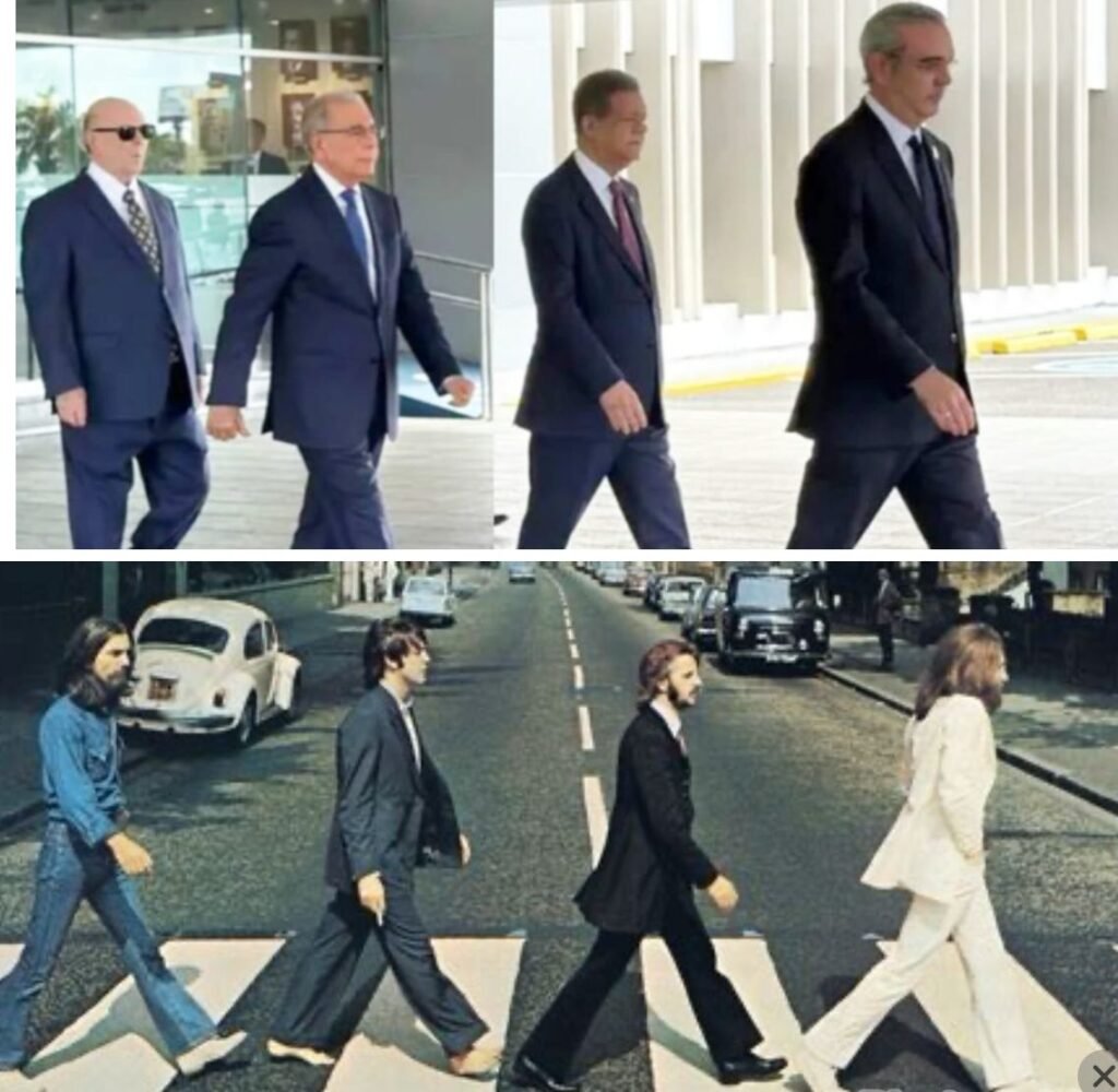 Santo Domingo, RD – Dos imágenes, dos épocas, dos continentes… pero una misma línea visual de impacto: la caminata histórica de líderes que marcan época. El 14 de mayo de 2025 quedó grabado en la memoria visual de los dominicanos cuando el presidente Luis Abinader, junto a los ex presidentes Leonel Fernández, Danilo Medina e Hipólito Mejía, protagonizaron una escena memorable durante la Cumbre sobre Haití, celebrada en la sede del Ministerio de Defensa de la República Dominicana.