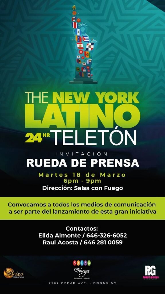 New York: Global Media Federation tiene el honor de invitar a todos los medios de comunicación a la rueda de prensa de The New York Latino Teletón 2025, un evento benéfico de gran impacto que reunirá a la comunidad latina en una jornada de 24 horas de solidaridad, música y esperanza.