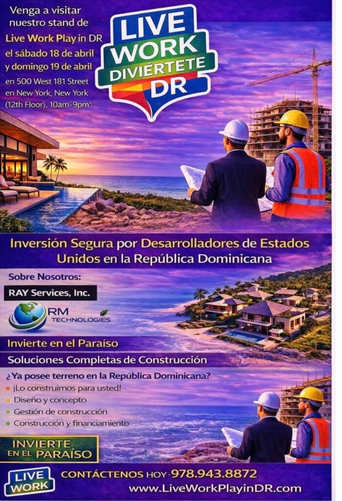 Nueva York.– Si estás pensando en vivir, invertir o construir en la República Dominicana, esta es tu oportunidad. La innovadora plataforma LIVE. WORK. PLAY. IN DR estará presente en el Dominican House Fest 2026, ofreciendo soluciones reales y seguras para quienes desean dar el paso hacia una vida completa en el paraíso.