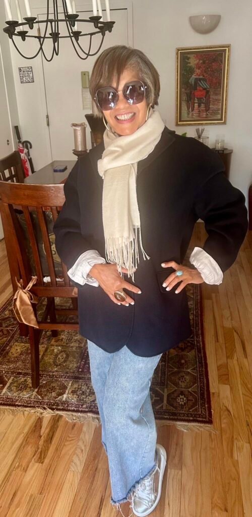 - Mujeres: Permite jugar con contrastes, redefinir la silueta y proyectar un estilo sofisticado o relajado. Para muchas, funciona como una “armadura” frente a la presión estética.