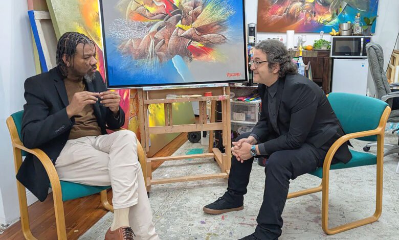 Mientras lo escucho hablar en su estudio de Miami, rodeado de lienzos donde las figuras