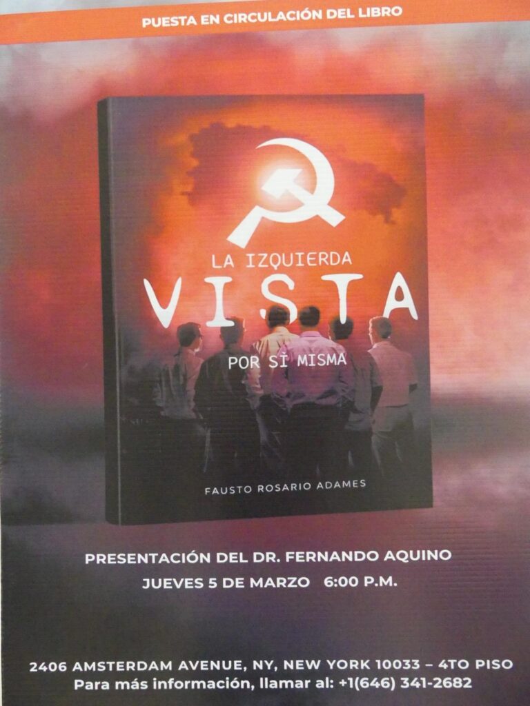 NUEVA YORK. – El afamado periodista, Fausto Rosario Adames, presentó este jueves en Nueva York su libro «La izquierda vista por sí misma”, en un acto que reunió a lectores, académicos y miembros de la diáspora dominicana interesados en el debate político y cultural sobre la izquierda en América Latina.