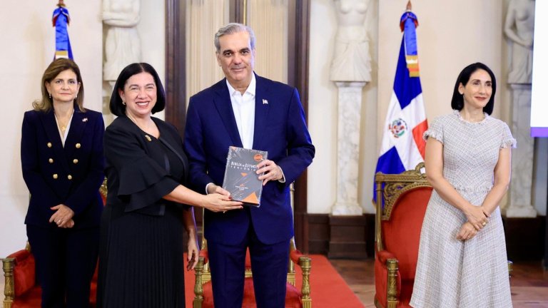 Santo Domingo.– Con la presencia del presidente de la República, Luis Abinader Corona; la vicepresidenta Raquel Peña; la primera dama Raquel Arbaje; el pastor Milcíades Franjul, enlace del Poder Ejecutivo con las Iglesias Evangélicas, y el padre Kelvin Acevedo, se celebró este viernes en el salón Las Cariátides del Palacio Nacional el Día Nacional de la Biblia.