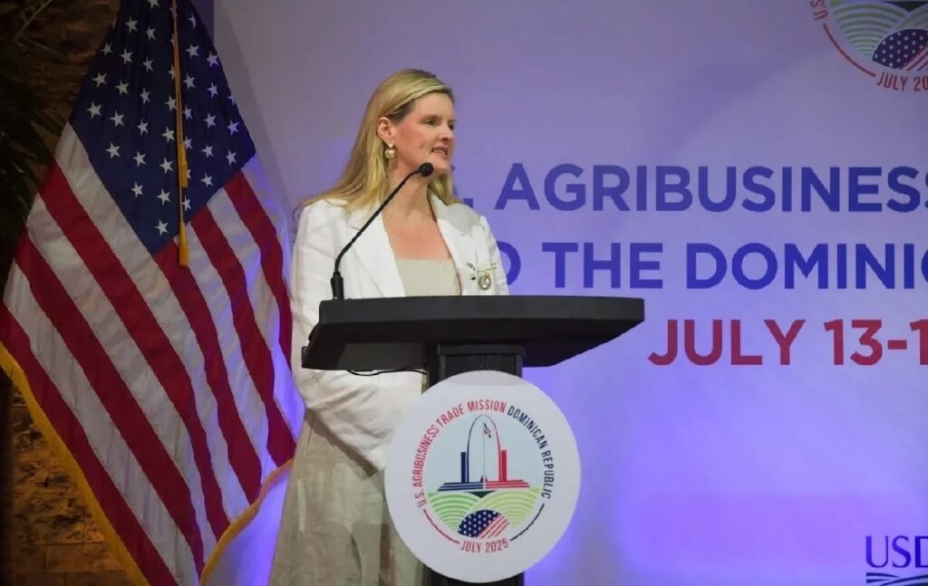 Michelle Bekkering, subsecretaria adjunta de Comercio y Asuntos Agrícolas Internacionales del Departamento de Agricultura de los Estados Unidos (USDA), encabezó una delegación de alto nivel que visitó la República Dominicana del 13 al 17 de julio. El propósito de esta visita fue ampliar alianzas que beneficien a agricultores, ganaderos y productores de ambas naciones, siendo esta la quinta misión del USDA en 2025.