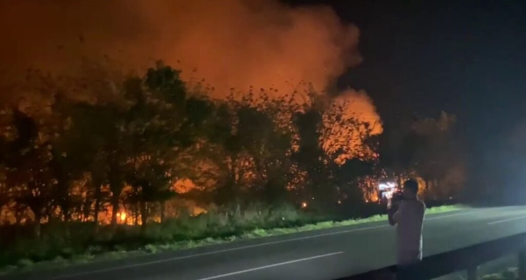 Un incendio de grandes proporciones afecta la entrada de San Pedro de Macorís, generando preocupación por la cercanía de una tubería de combustible enterrada en la zona. Desde las 2:00 de la tarde del jueves, bomberos de San Pedro de Macorís y Guayacanes luchan por controlar el fuego, que se ha extendido a unos 10 kilómetros.